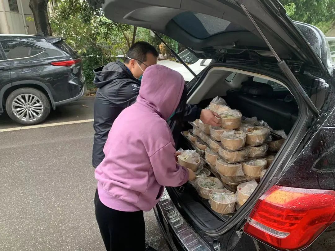 根据疫情防控要求,学生宿舍进一步实行全封闭管理,全体学生以宿舍为单位进行日常学习生活,不聚集、不串门。老师们为了两千余名在校学生的三餐尽心竭力,与志愿者们一起化身“温暖派送员”不落一楼栋,不忘一个寝,奔波在食堂与宿舍之间,将餐食以最快的速度送到同学们手中。