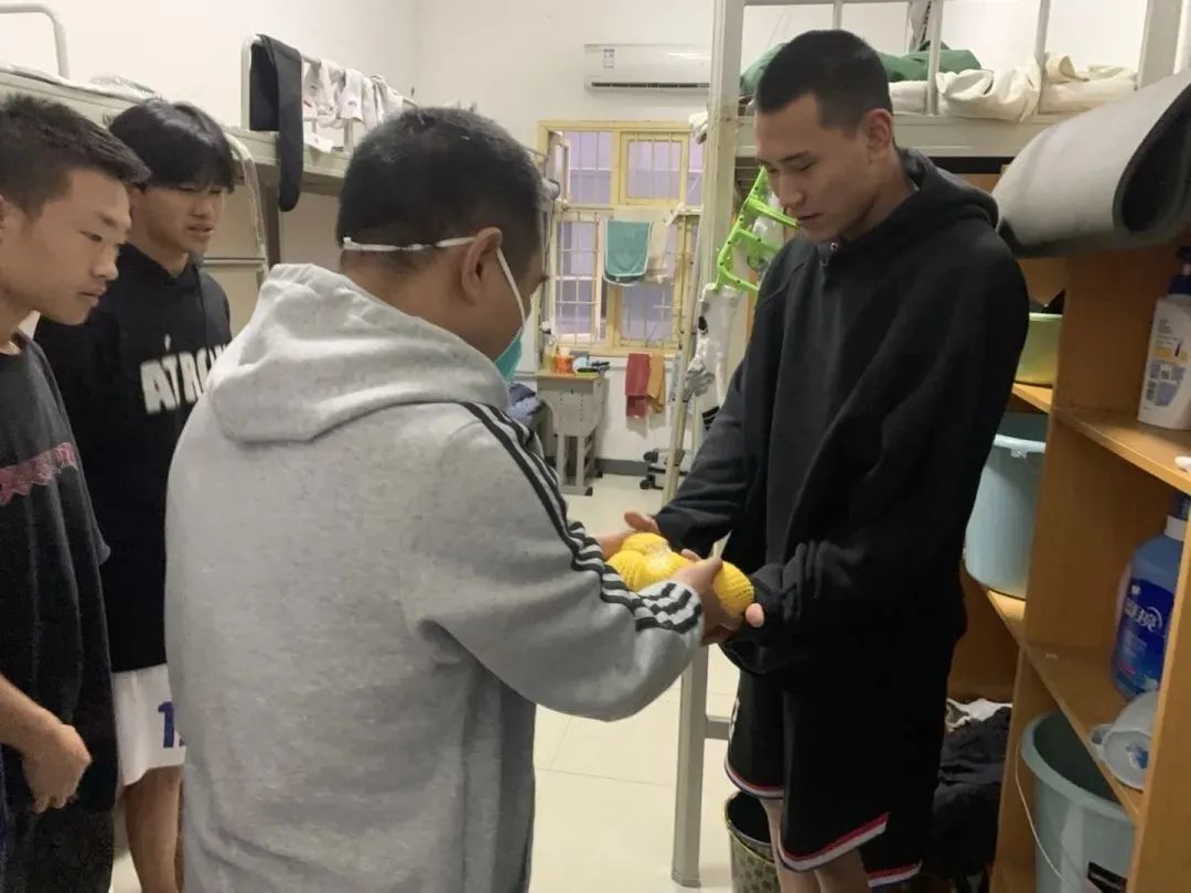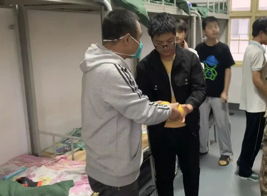分发水果的过程中,侯雄伟校长多次暖心询问同学们的住宿饮食、学习生活等情况,了解同学们目前的心理状态、所思所想,叮嘱大家要严格遵守防疫期间校园相关管理规定,加强个人安全防护意识。一份份新鲜的水果承载着学校对同学们的关心和爱护,大家被这份满满的温情包裹着,温暖和感动在心中蔓延。
