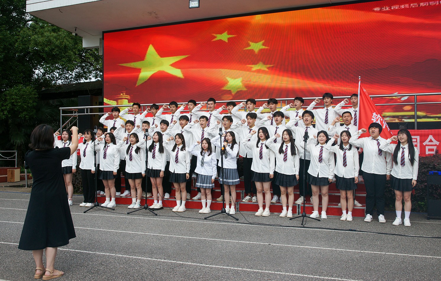 《新的天地》、《打靶归来》、《我们都是追梦人》、《如愿》、《没有共产党就没有新中国》......一首首脍炙人口的经典曲目在校园里唱响,人工智能学子们用嘹亮动听的歌声表达了对祖国繁荣昌盛的追求以及昂扬拼搏、奋发前进的斗志。